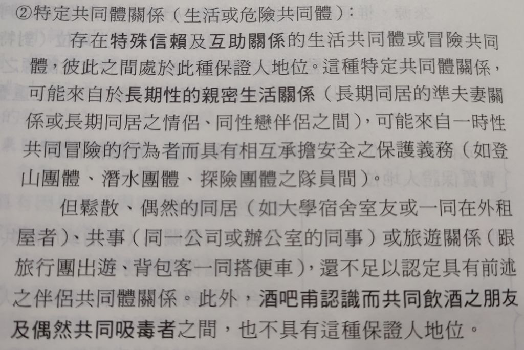 其中同居關係是否可以認為具有密切生活關係,而能成立保證人地位,依照近期實務見解及學說
