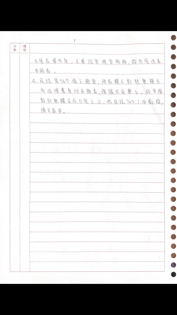 2.就B屋部分,所主張的返還請求權,則因為B屋是未登記之不動產,所以按照大法官釋字107號、164號的反面推論,應該認為有消滅時效制度的適用。關於未登記之不動產,還有動產所生的物上請求權,一樣受到消滅時效的限制,只是這部分民法沒有特別規定,那就是適用民法§125,時效就是15年。所以超過15年後甲才主張的話,乙確實可以主張時效抗辯,拒絕履行。