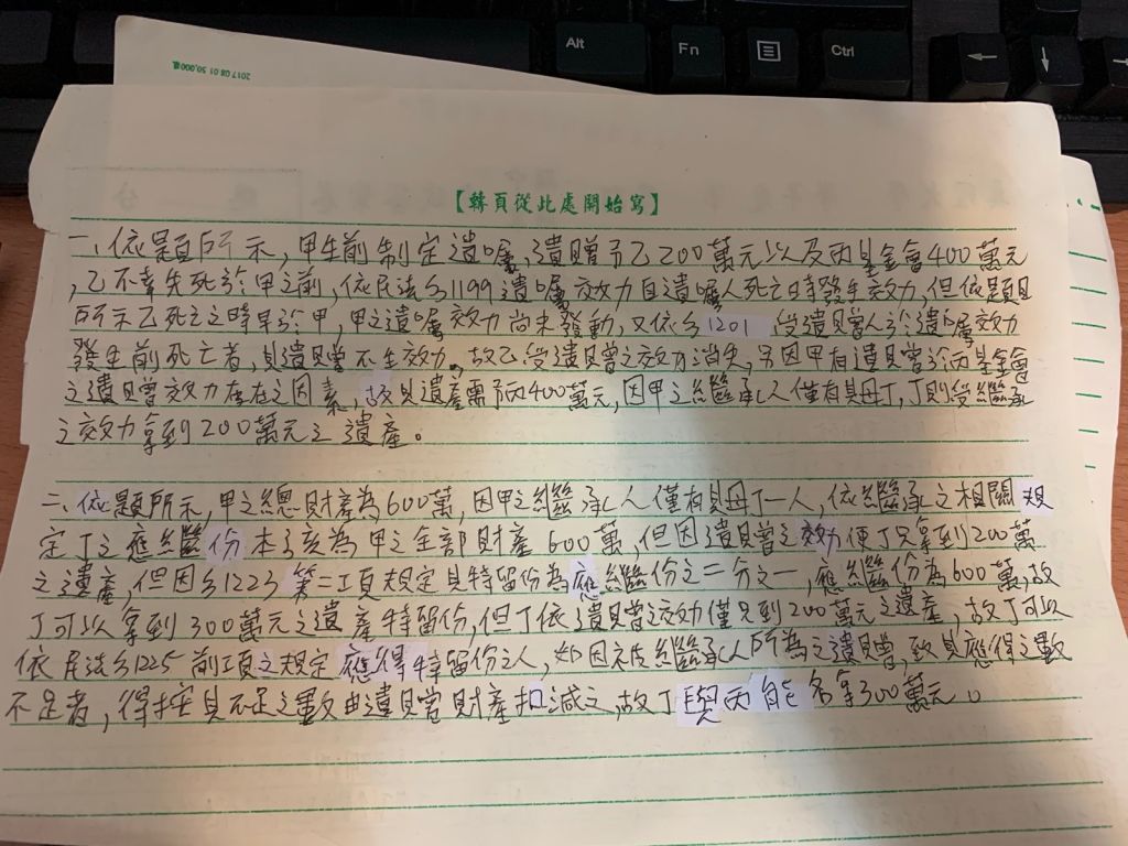 1.甲遺贈丙400萬元,丁只分得200萬元,已侵害到丁的特留分。
