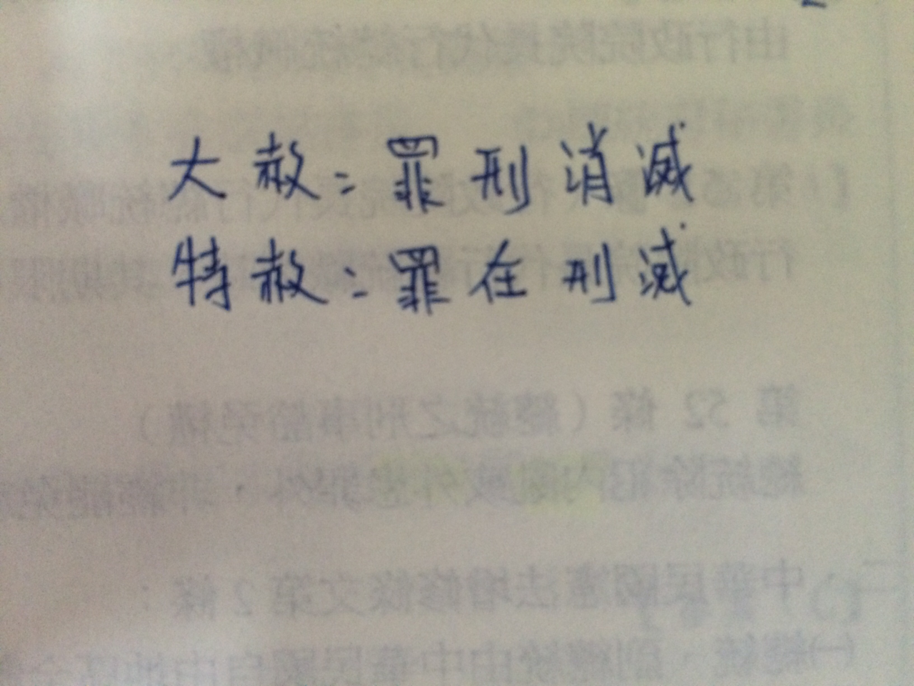 (二)效力: 免除刑罰以及清除前科,例:受刑法149條首謀者 三年以下有期徒刑之人,施行大赦,則不用施行且五年內再犯亦不會構成刑法47條累犯